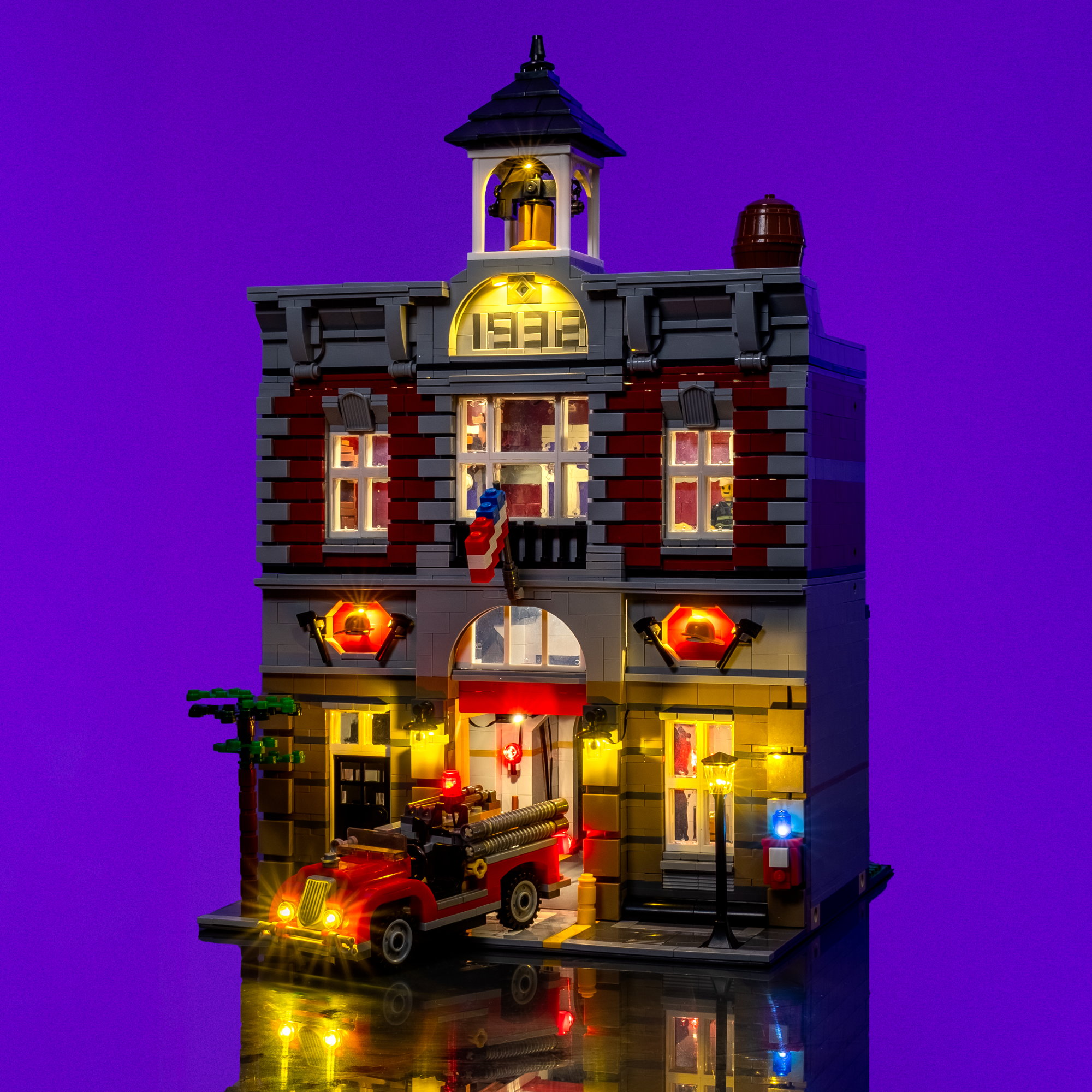 Answer the call with a custom Light My Bricks™ Light Kit for the LEGO® Creator Expert Fire Brigade 10197, designed to capture the heroic spirit of this classic modular set.